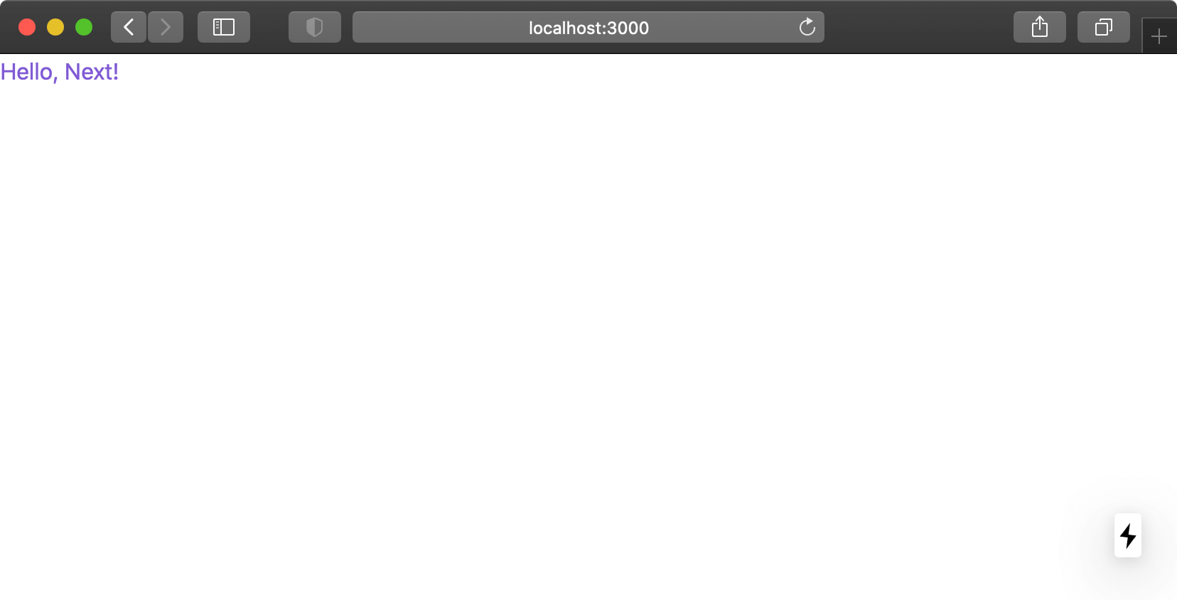 Run yarn dev and go to http://localhost:3000/. You should see a small, purple text appear on the page.